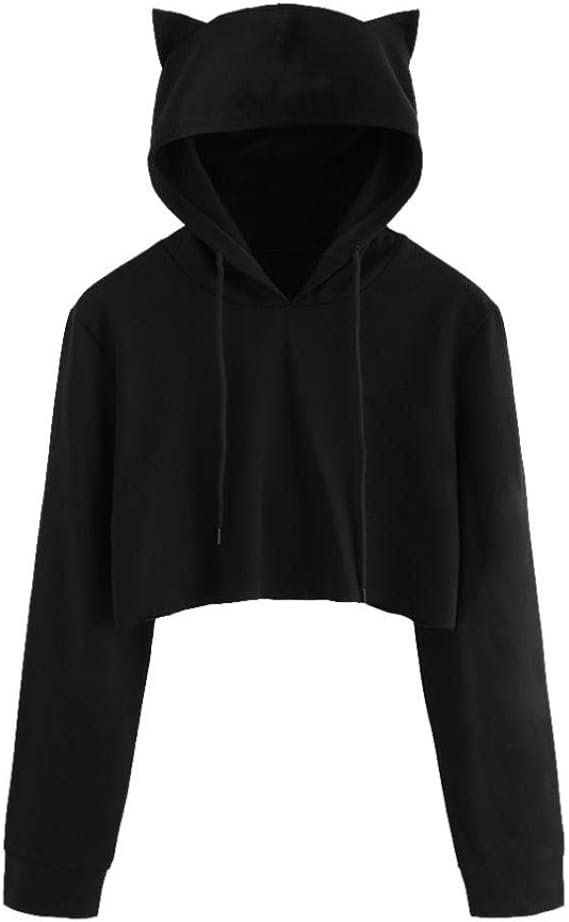 Hoodie,Fashion Cute Kitty Cat Ear solid black pullover hoodie